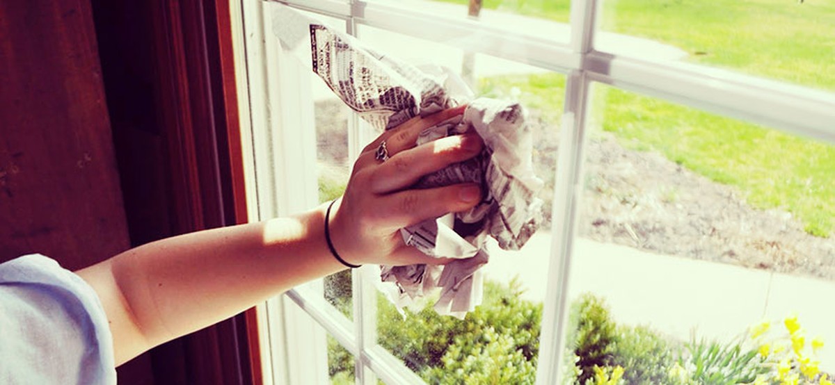 - Zeitung grob zusammenrollen oder falten und das Glas in kreisenden Bewegungen abwischen.
